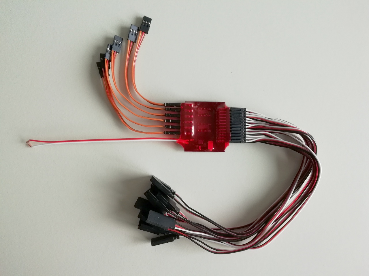 Mit diesem Baustein können 6 Steuerkanäle (Servofunktionen) empfängerseitig auf weitere