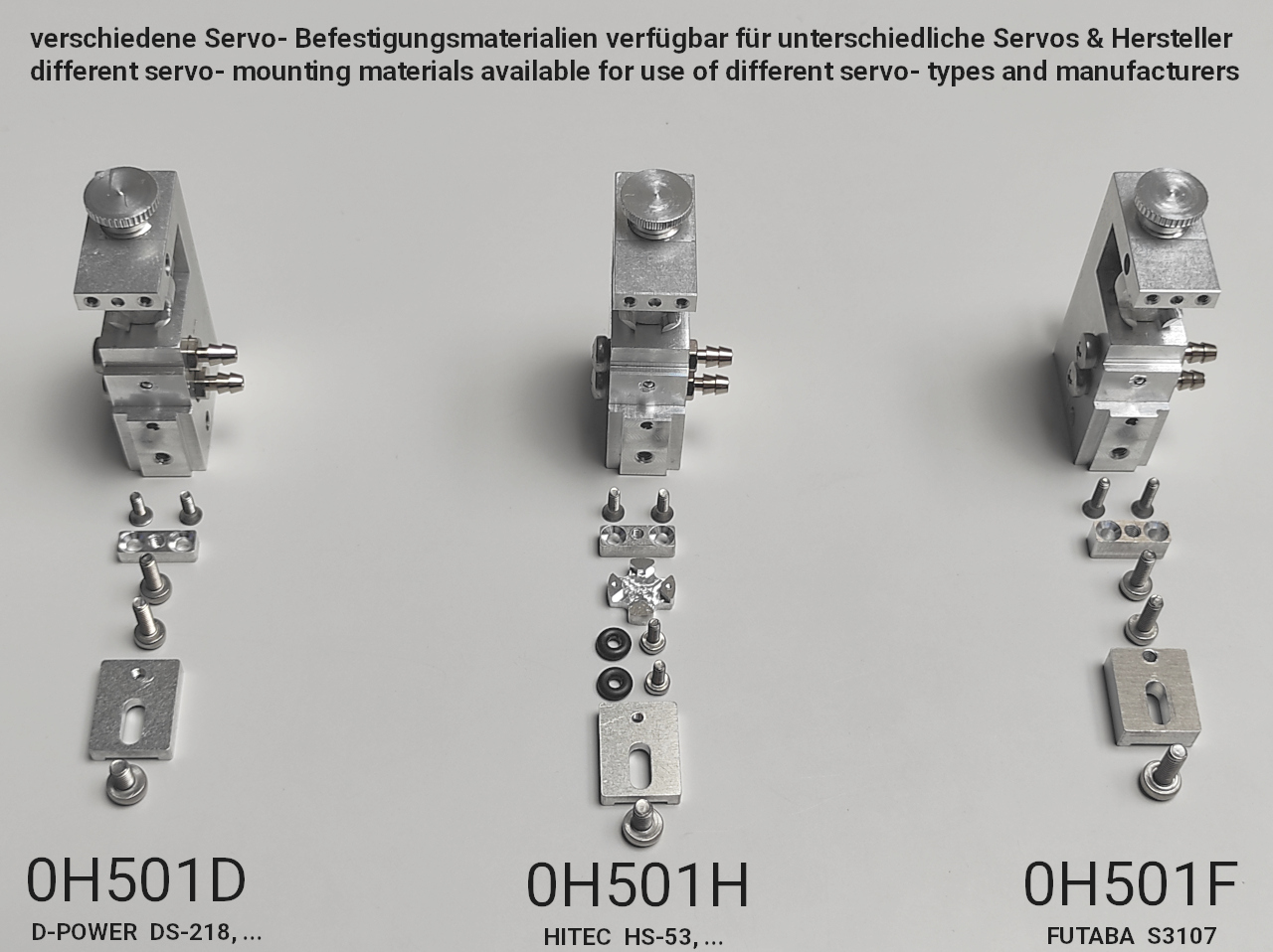 Befestigungsmaterialien für unterschiedliche Servo- Hersteller,