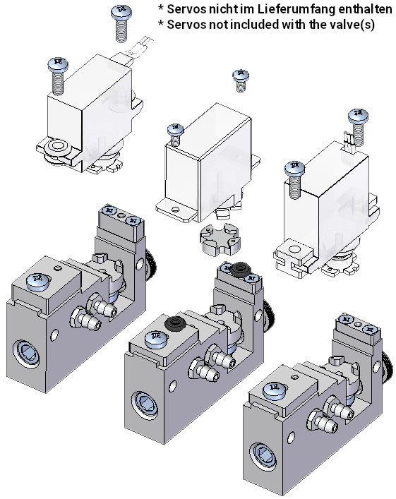 einzeln erhältlich sind, wodurch es sogar möglich wird verschiedene Servos in einem Ventil zu betreiben.