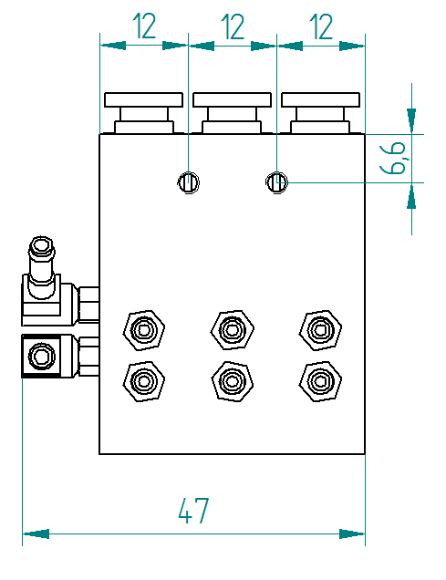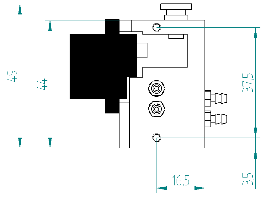 Ventil- Ausgang (Anschlüsse A/B): mit Nippel H022 (für Schlauch außen 3mm / innen 1,5mm)