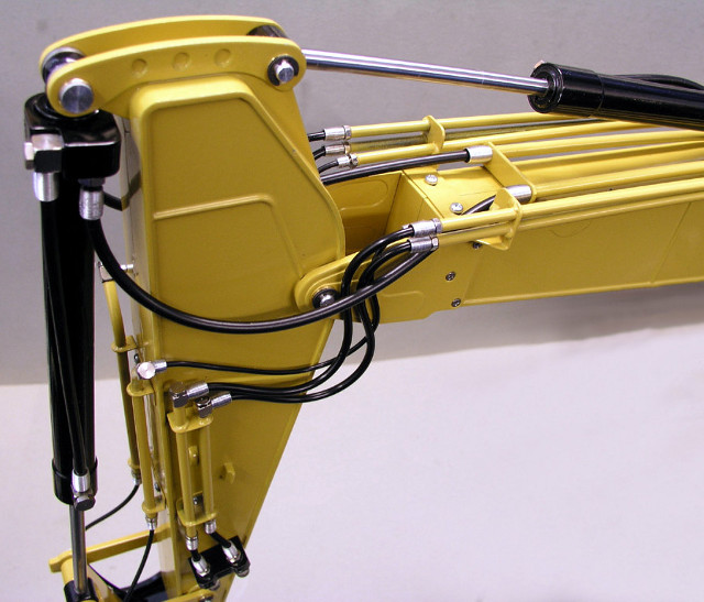 Die zusätzlichen Hydraulikfunktionen müssen natürlich irgendwie auf den Armen verlegt werden.