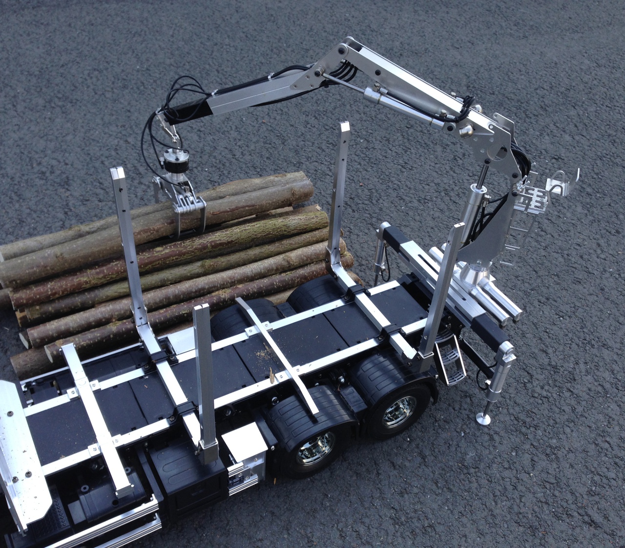 Auf Wunsch ist unser Kurzholzladekran, welcher an den von TAMIYA