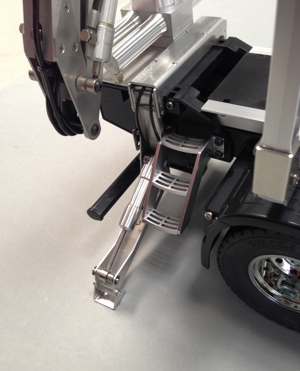 Auf Grund der kleineren Hydraulikzylinder und der Hebelverhältnisse hat diese Abstützung etwas weniger Kraft, wie unsere "normale" Abstützung |